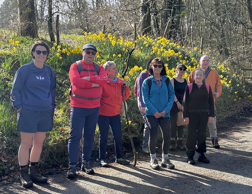 As they set off they walked to the nearby churchyard to learn about three medieval crosses from vicar Rev. Jonathan Carmyllie before making their way along tracks and through pastures and beautiful woods, with spectacular views by Whalley Nab to reach Great Harwood.